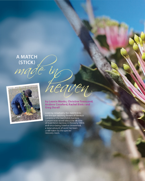 The matchstick banksia was recently listed as one of 30 plant species identified for targeted recovery action as part of the Australian Government’s Threatened Species Strategy 2015–2020. This renewed focus, with significant investment of funds from a variety of sources, has led to an increase in efforts to conserve matchstick banksia.